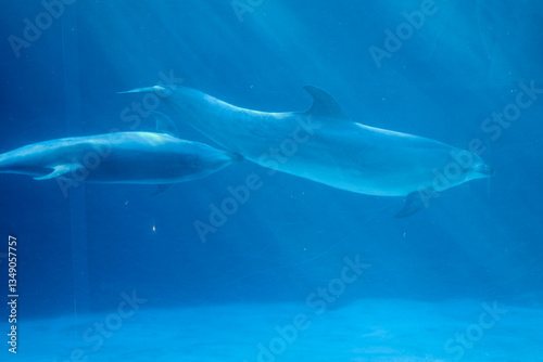 Naklejka premium 水槽の中を泳ぐイルカ(名古屋港水族館)