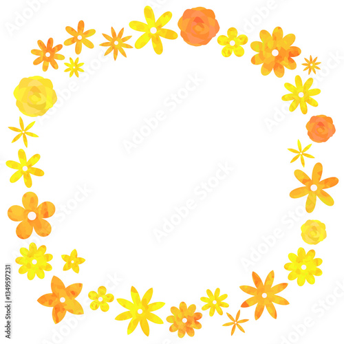 © shiori, Obraz premium 花の円形フレーム 枠 黄色 ベクター素材