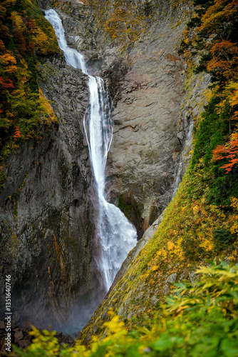© Nature K Photostudio, Obraz premium 落差日本一。紅葉真っ盛りの称名滝
