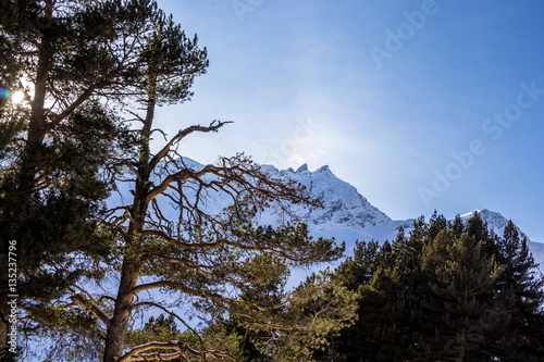Obraz premium красивый вид на снежные горы, заповедный лес, зимний пейзаж, природа Северного Кавказа