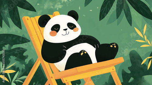 Naklejka premium 大熊猫在竹林躺椅上乘凉