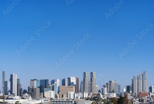 Naklejka premium 新宿高層ビル群 快晴 青空 大空コピースペース