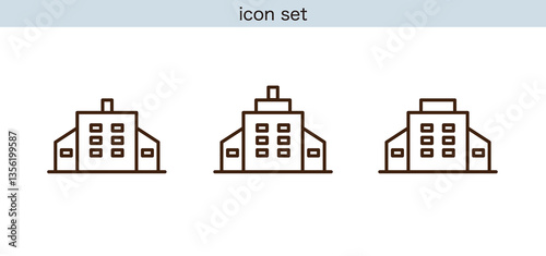 Obraz premium 建物, 住宅, ビル, 商業施設, 病院, 不動産, インフラ, 建築, シンプル, アイコン, 図面, 設計, 街並み, 公共施設, 医療施設, 工場,...