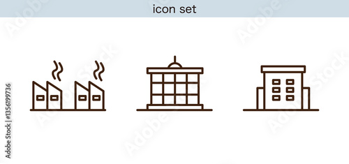Obraz premium 建物, 住宅, ビル, 商業施設, 病院, 不動産, インフラ, 建築, シンプル, アイコン, 図面, 設計, 街並み, 公共施設, 医療施設, 工場,...