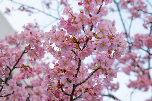 © Bhdr1996, Obraz premium 日本、京都、淀水路、河津桜、桜、春、青空、花、淀、滿開
