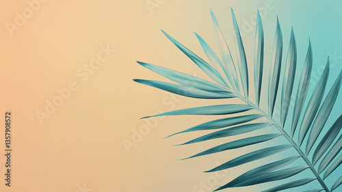 © bephoto, Obraz premium グラデーション背景に描かれたミニマルなヤシの葉アート