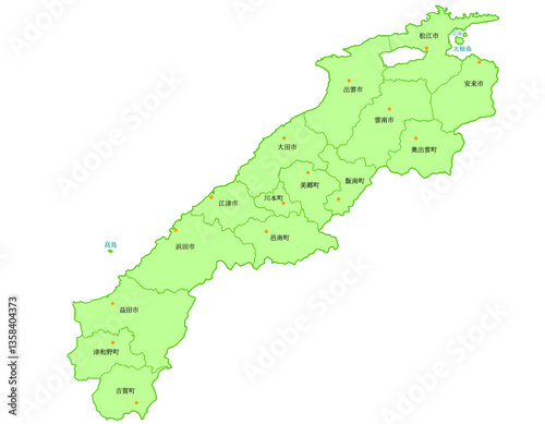 © 酢漬け きゅうりの, Fototapeta premium 島根県 地図 黄緑 斑点 イラスト