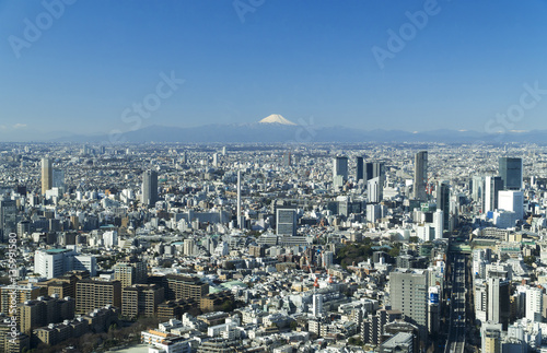 © oka, Fototapeta premium 東京都市風景 昼 港区から望む 富士山 渋谷中心街 都心の街並