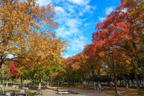 Naklejka premium 青空と紅葉