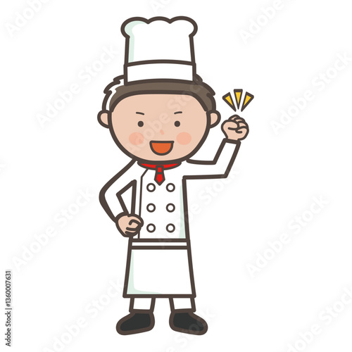 Obraz premium ガッツポーズでやる気満々な若い男性コックさんの全身イラスト