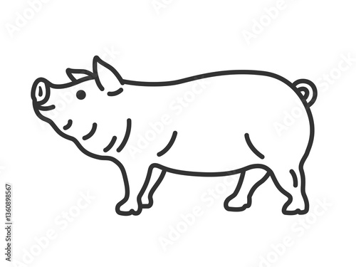 © R-DESIGN, Obraz premium ブタ(線画)のイラスト