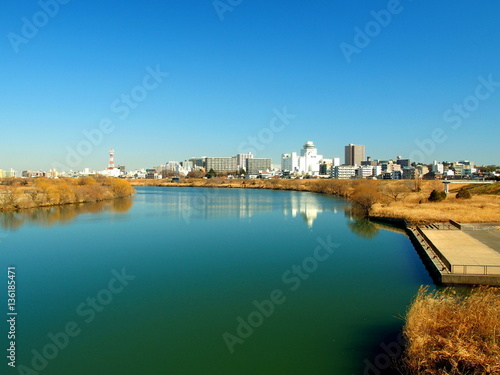 © smtd3, Naklejka premium 船着き場のある冬の江戸川風景