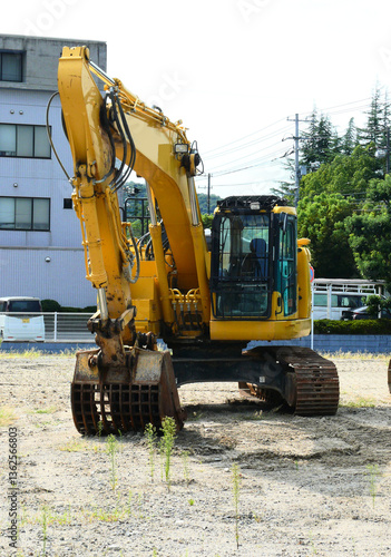 © Toshiyuki, Fototapeta premium 工事現場に運び込まれた重機