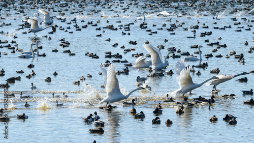 © nam,namsys in Japan., Fototapeta premium 飛び立つ白鳥達