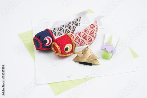 Obraz premium 菖蒲のゼリー菓子と鯉のぼり