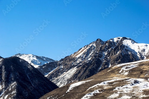 Fototapeta premium горный пейзаж, снежные склоны, природа Северного Кавказа, пейзаж