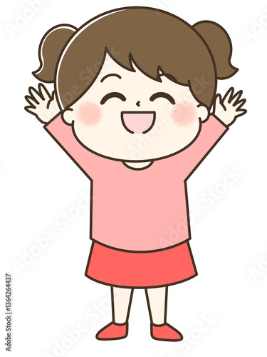 © coni-, Fototapeta premium 万歳する笑顔の女の子の全身ゆるかわイラスト