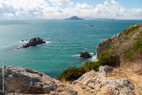 © rai, Obraz premium 青い海と岸壁の風景 愛知県