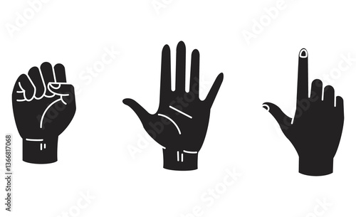 Obraz premium 手のポーズ3種類(グー、パー、指差し)のアイコンセット