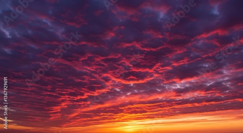 © Heini, Fototapeta premium 燃える夕焼け空 赤紫の雲が美しく広がる
