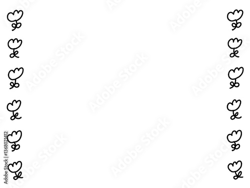Obraz premium ゆるくて可愛いお花のラインフレーム チューリップ・春