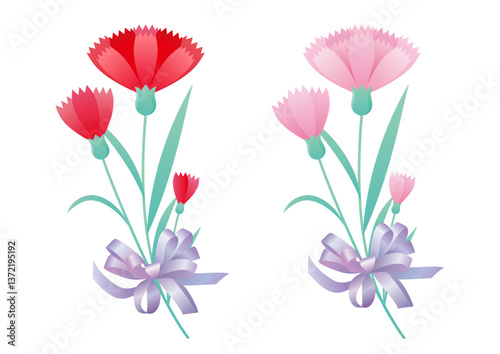 © のら, Naklejka premium カーネーションの花束セット、赤とピンク