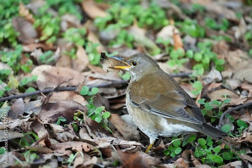 Fototapeta premium 落ち葉を咥えるシロハラ