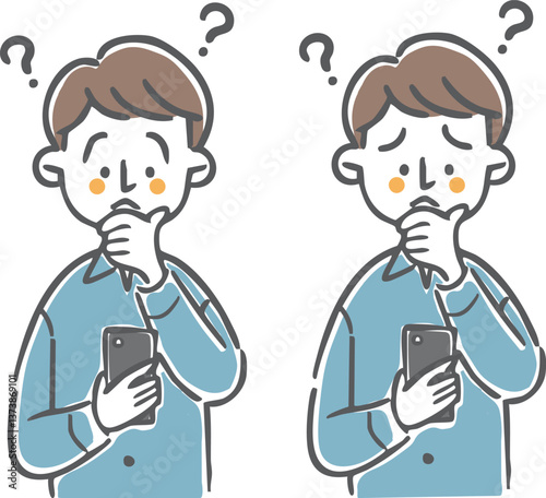 Fototapeta premium スマホを見て疑問を持つ男性 上半身 ベクター