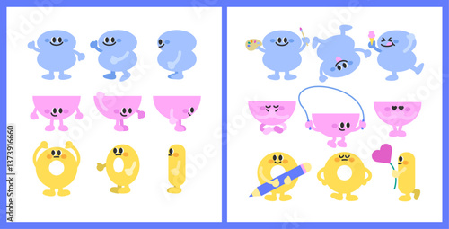 © 지언 신, Obraz premium 귀여운 기본 도형 캐릭터