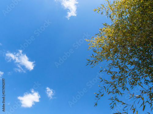 © スタジオ スパロウ, Obraz premium 竹林から見上げる青空と雲04