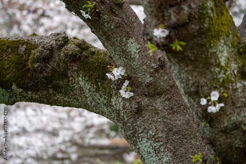 © Aki-G's Japan Views, Obraz premium 木肌で花を咲かせる胴吹き桜