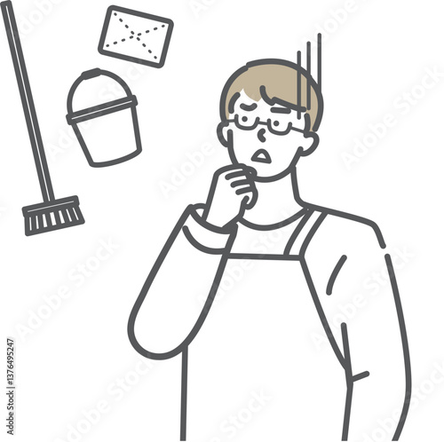 Obraz premium 掃除に悩む主夫のイラスト素材