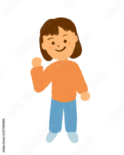 © Bambi and Sunny, Obraz premium やる気、元気、ガッツポーズする女性のイラスト素材