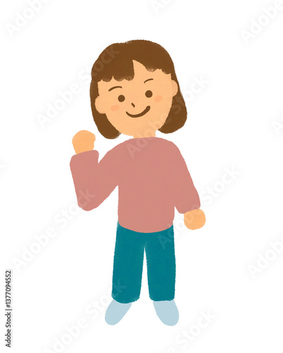 © Bambi and Sunny, Obraz premium やる気、元気、ガッツポーズする女性のイラスト素材