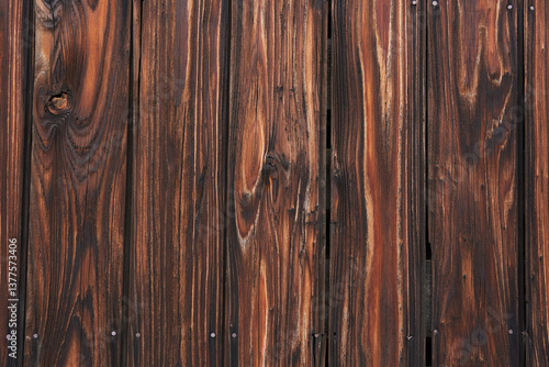 Obraz premium 焦げ目の美しい焼杉・日本の伝統的な外壁素材・背景テクスチャーシリーズ
