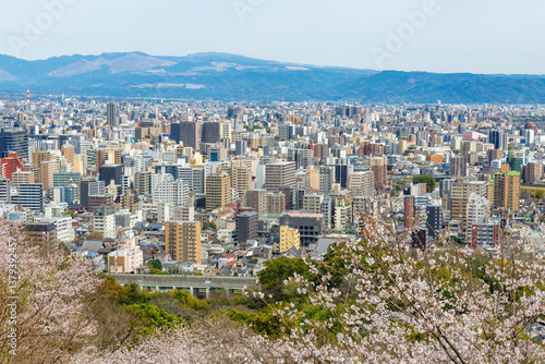 Obraz premium 桜咲く花岡山公園から望む熊本市街地