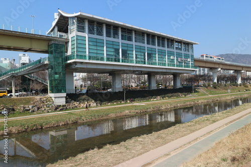 © ほじん, Obraz premium 釜山金海軽電鉄の駅と川