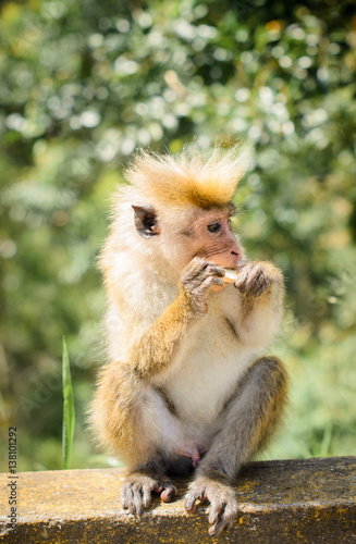 © natasidorova , Obraz premium Обезьяна с челкой кушает печенье
