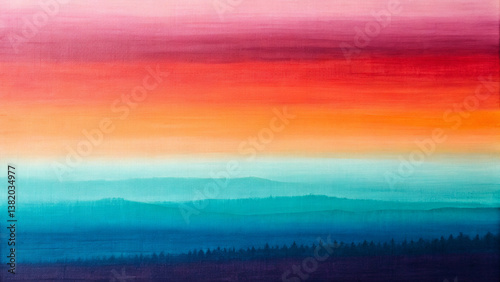 © Libra, Fototapeta premium イラスト:山の夕焼け