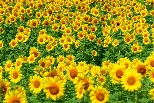 Obraz premium 上郷のひまわり畑。遠野、岩手、日本。8月中旬。