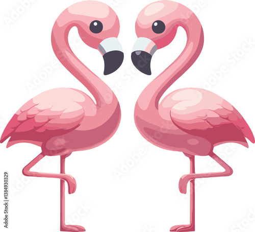 © 鳥鳥 , Fototapeta premium シンプルな2匹のフラミンゴのイラスト