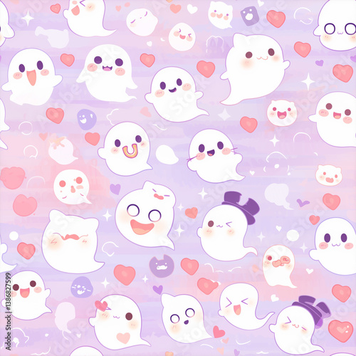 Obraz premium 귀여운 귀신를 유령으로 캐릭터화 패턴 디자인