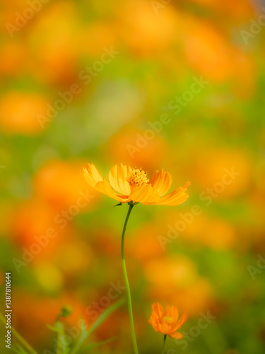 © STOCK THE WORLD, Obraz premium 秋の公園や花壇を彩るコスモス(キバナコスモス)のある風景。背景。自然風景素材。