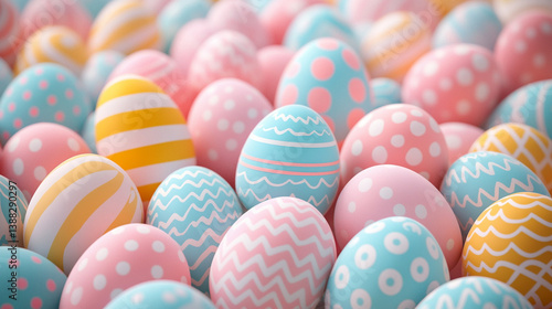 © 背景JAPAN, Obraz premium カラフルぎっしりイースターエッグでいっぱいの背景素材