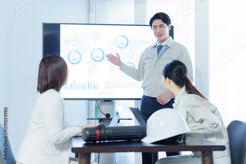 © taka, Obraz premium 会議室でプレゼンをする技術者