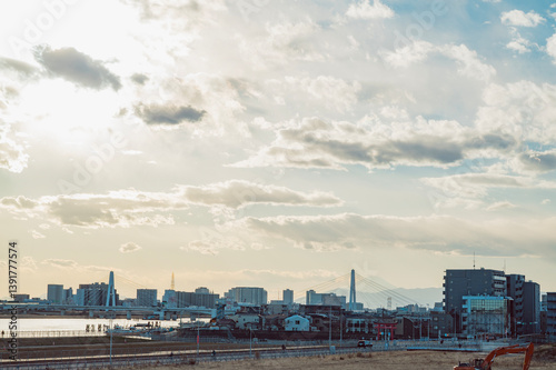 Fototapeta premium 東京 羽田出島から多摩川と富士山