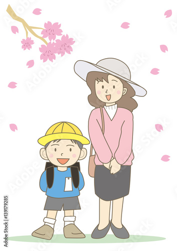 Obraz premium 入学式・母親と男の子