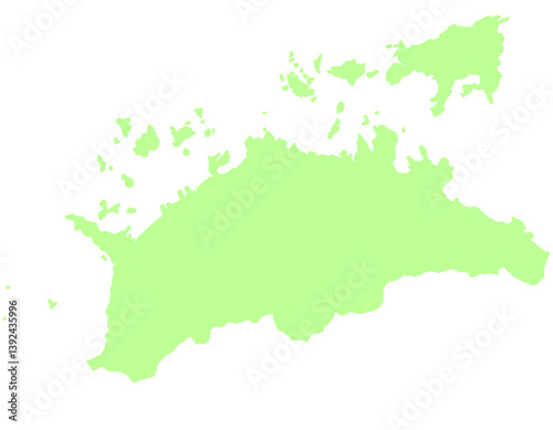 © 酢漬け きゅうりの, Obraz premium 香川県 地図 黄緑 イラスト