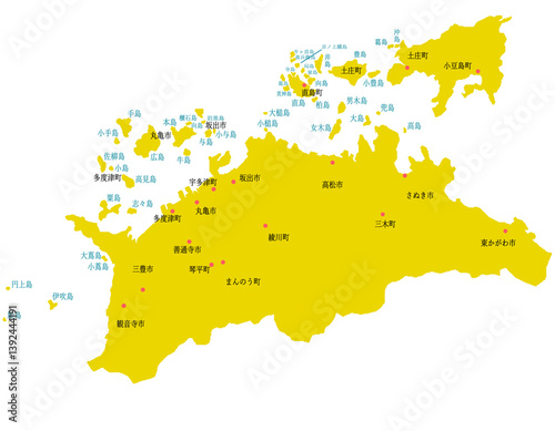 Obraz premium 香川県 地図 黄色 斑点 イラスト