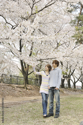 © MOMOTAROU, Fototapeta premium サクラの木下の若いカップル